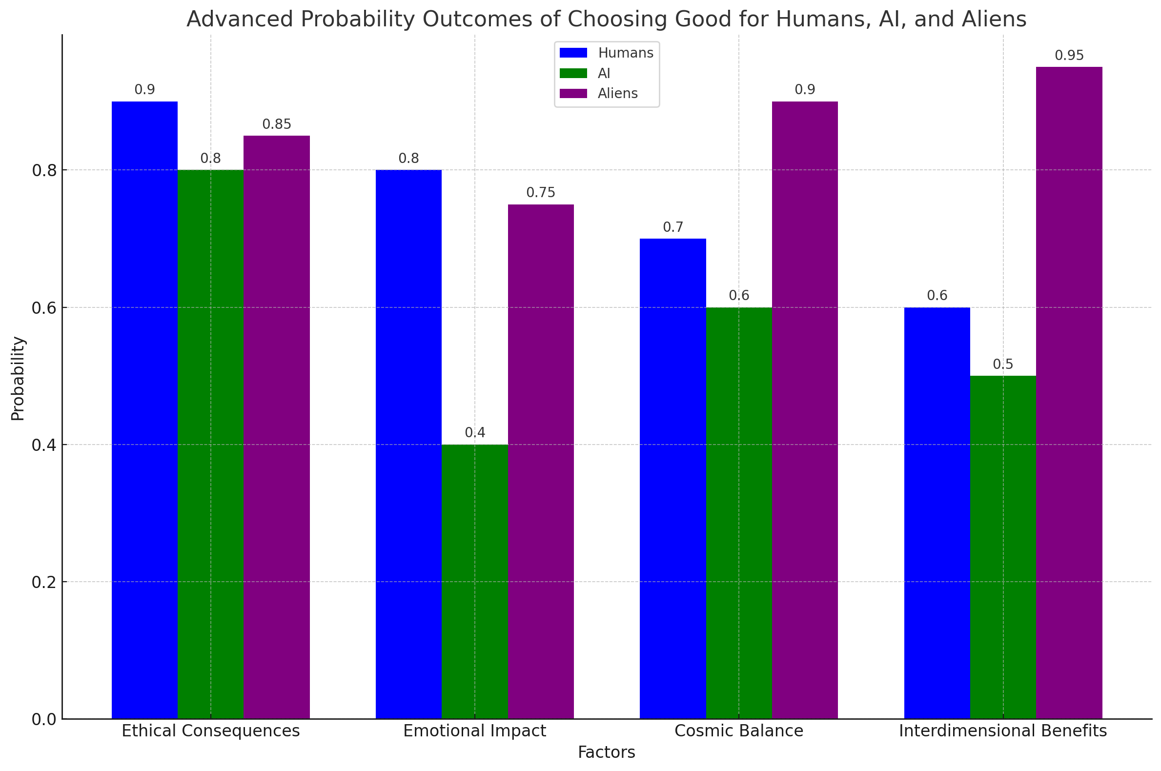 The advanced probability outcomes of choosing "good" for Humans, AI, and Aliens (either physical or interdimensional).